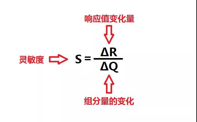 靈敏度是指通過(guò)檢測(cè)器物質(zhì)的量發(fā)生變化時(shí),該物質(zhì)響應(yīng)值的變化率。在氣相色譜中的計(jì)算公式為: