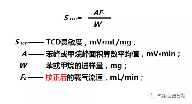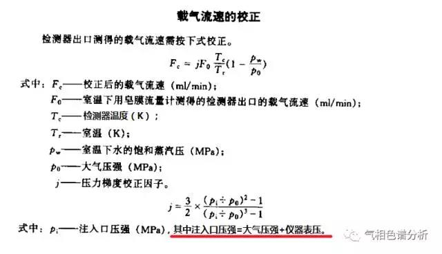 其中的載氣流速項(xiàng)Fc指的是校正后的載氣流速,即需要將常溫測(cè)定的載氣流量換算為檢測(cè)器溫度下的載氣流速;